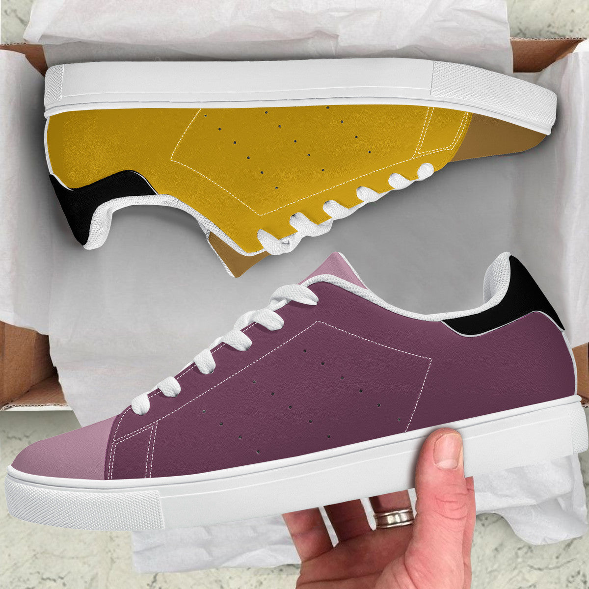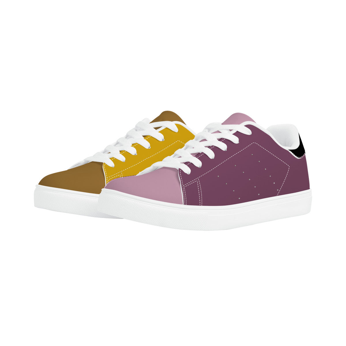 - Soft rubble soles for all over printing low top synthetic leather shoes