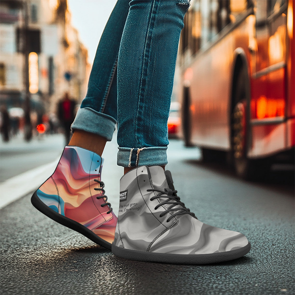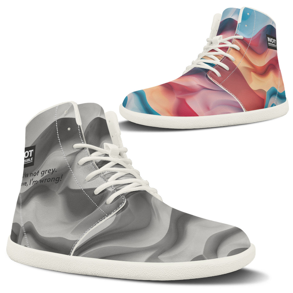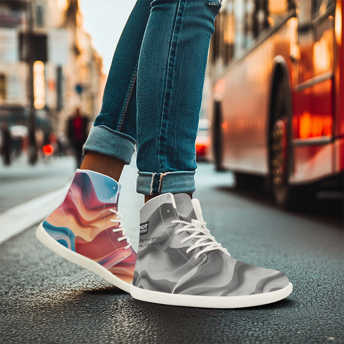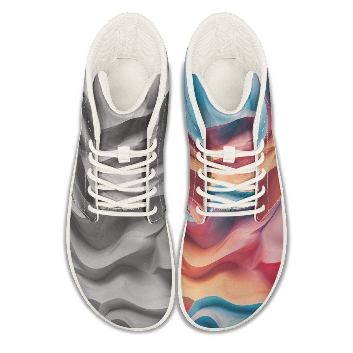 Free your feet and express your style! Experience the perfect fusion of natural, unrestricted movement and your own unique design with our custom barefoot high-top sneakers. We believe that comfortable, healthy footwear shouldn't be boring. Now you can enjoy all the benefits of minimalist shoes with a look that is 100% you.