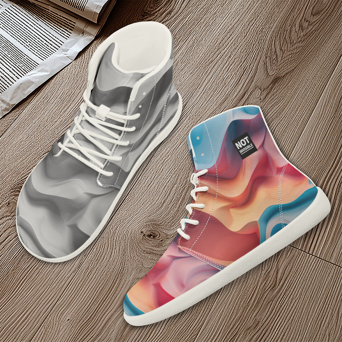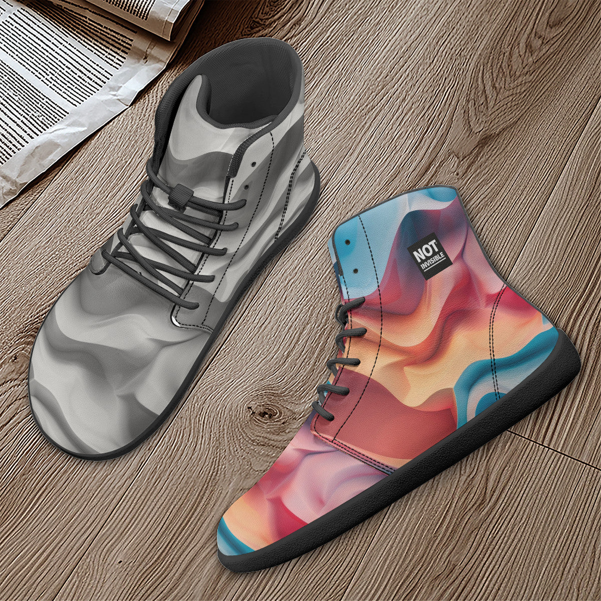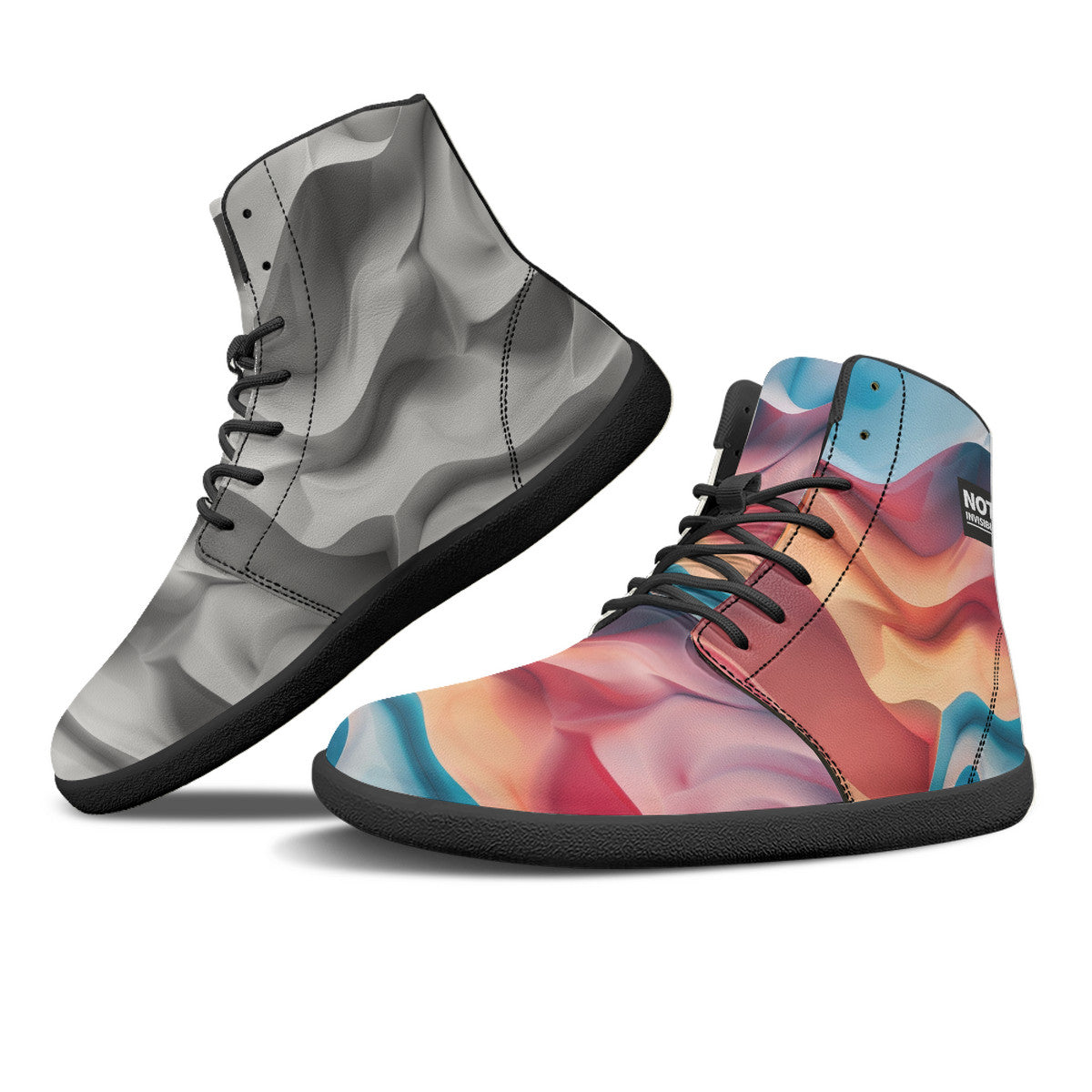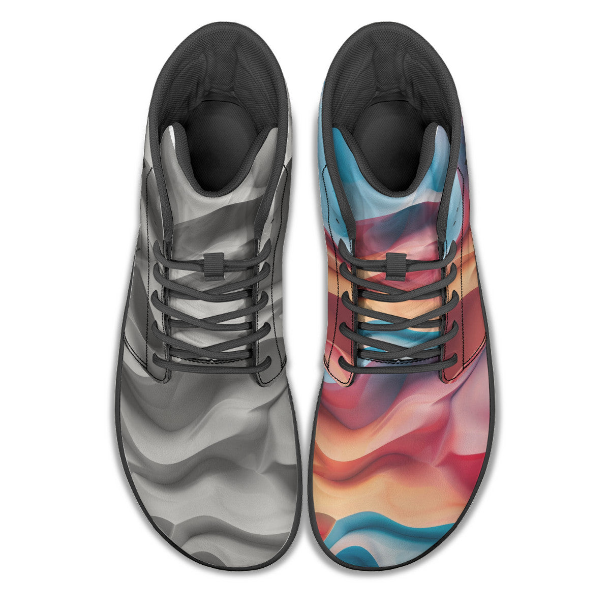 Free your feet and express your style! Experience the perfect fusion of natural, unrestricted movement and your own unique design with our custom barefoot high-top sneakers. We believe that comfortable, healthy footwear shouldn't be boring. Now you can enjoy all the benefits of minimalist shoes with a look that is 100% you.