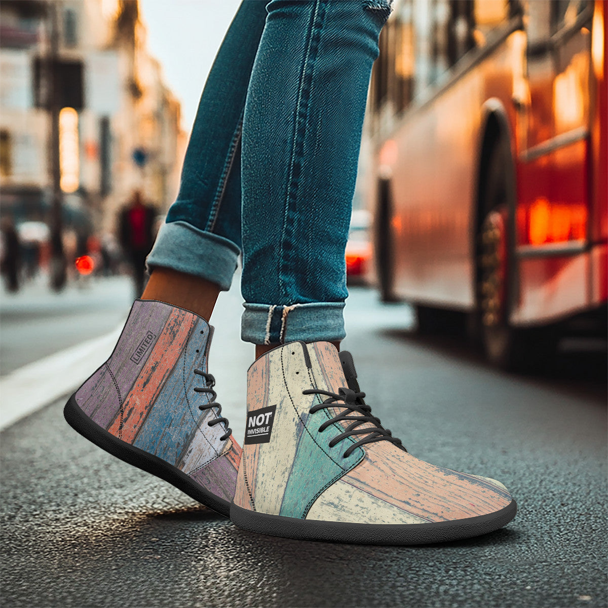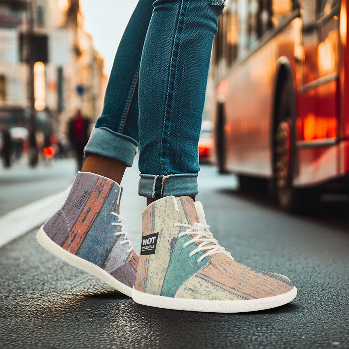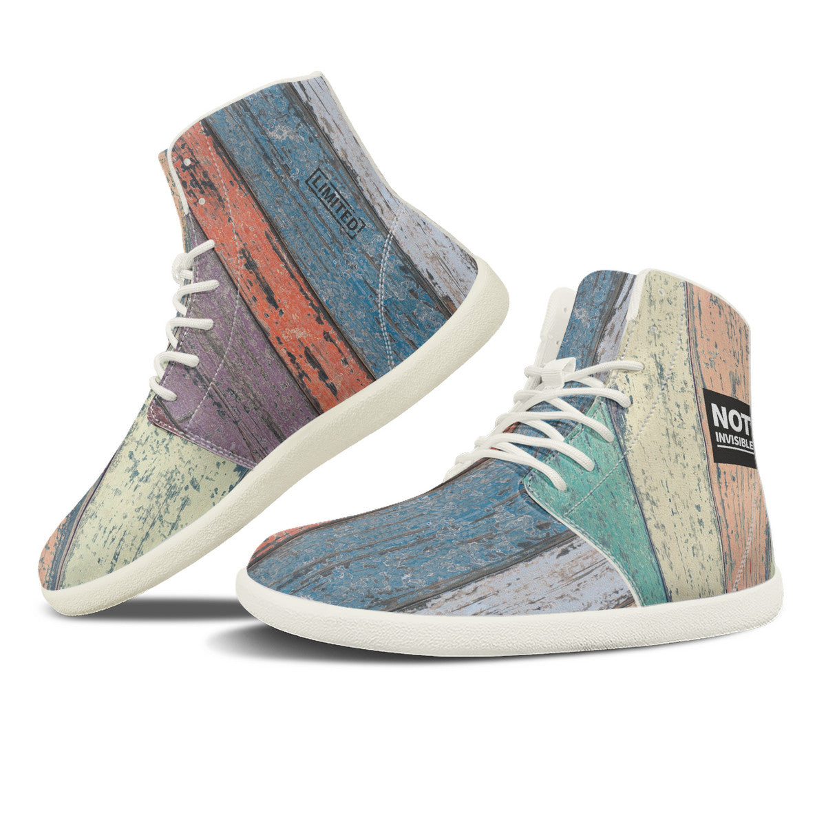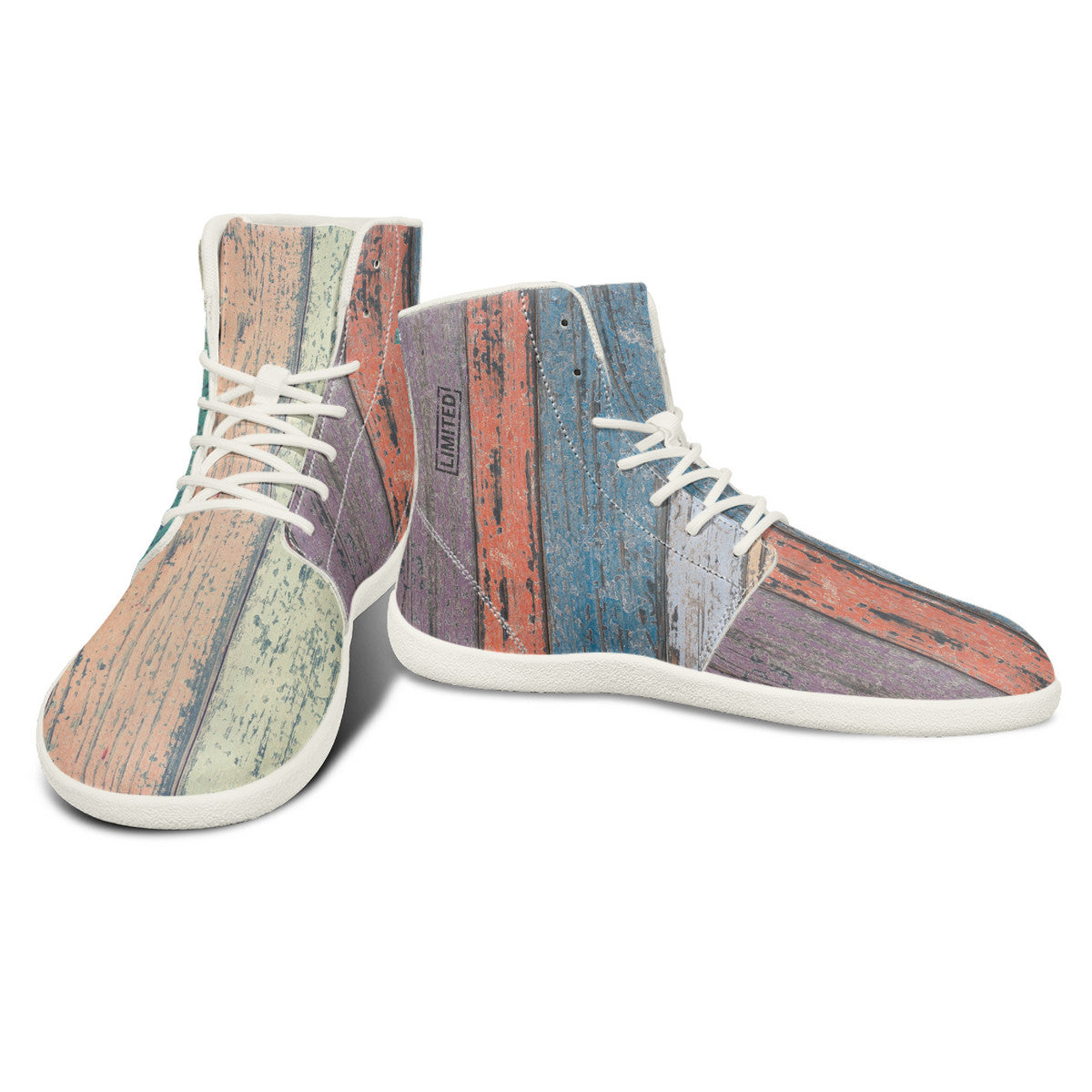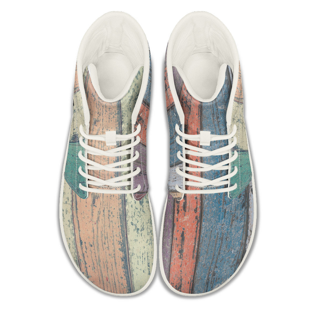 Free your feet and express your style! Experience the perfect fusion of natural, unrestricted movement and your own unique design with our custom barefoot high-top sneakers. We believe that comfortable, healthy footwear shouldn't be boring. Now you can enjoy all the benefits of minimalist shoes with a look that is 100% you.