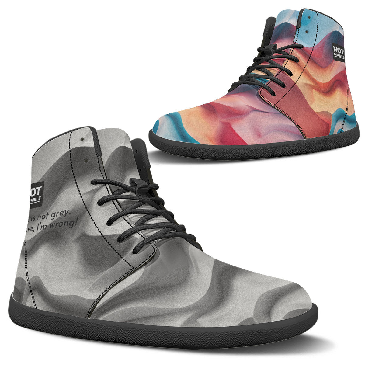 Free your feet and express your style! Experience the perfect fusion of natural, unrestricted movement and your own unique design with our custom barefoot high-top sneakers. We believe that comfortable, healthy footwear shouldn't be boring. Now you can enjoy all the benefits of minimalist shoes with a look that is 100% you.