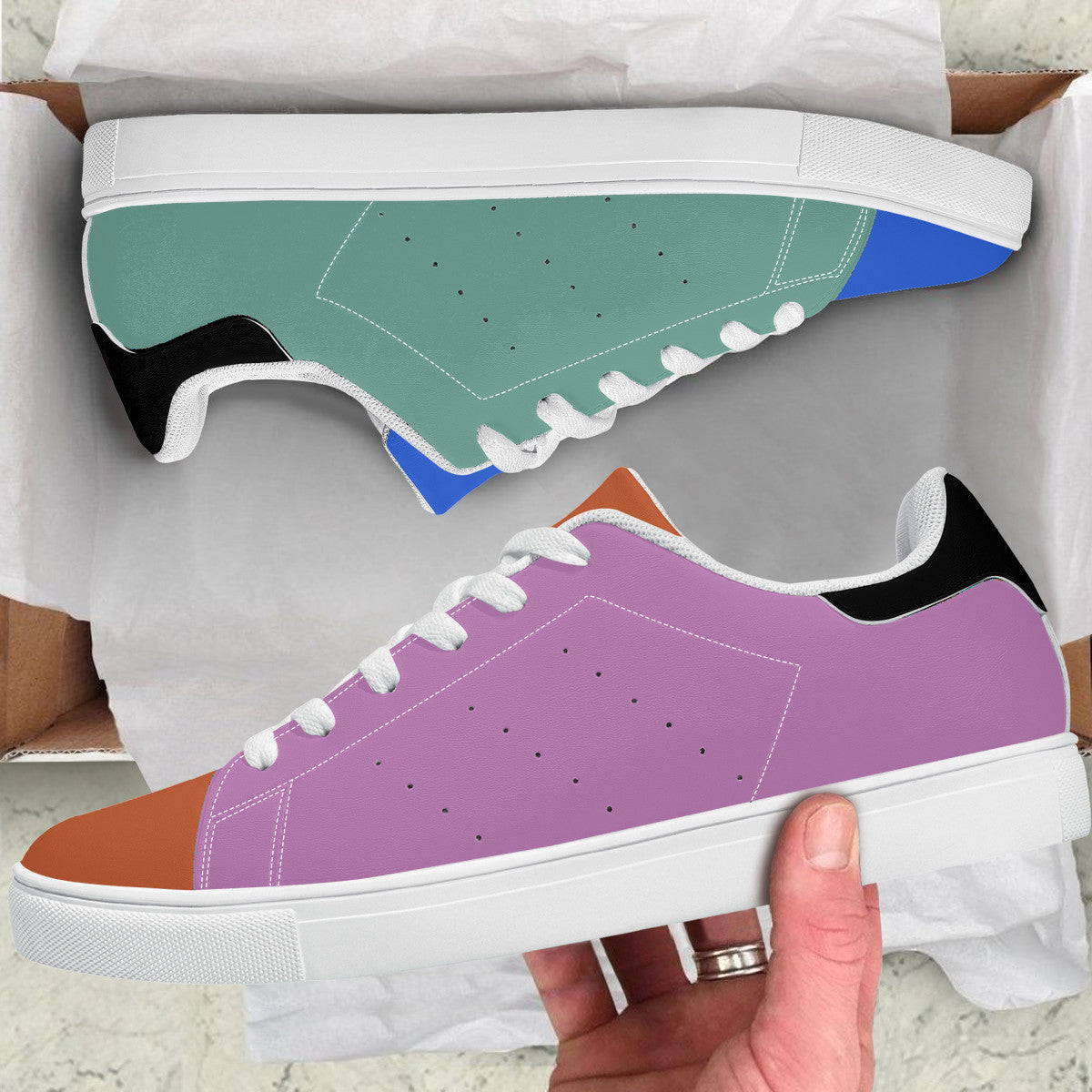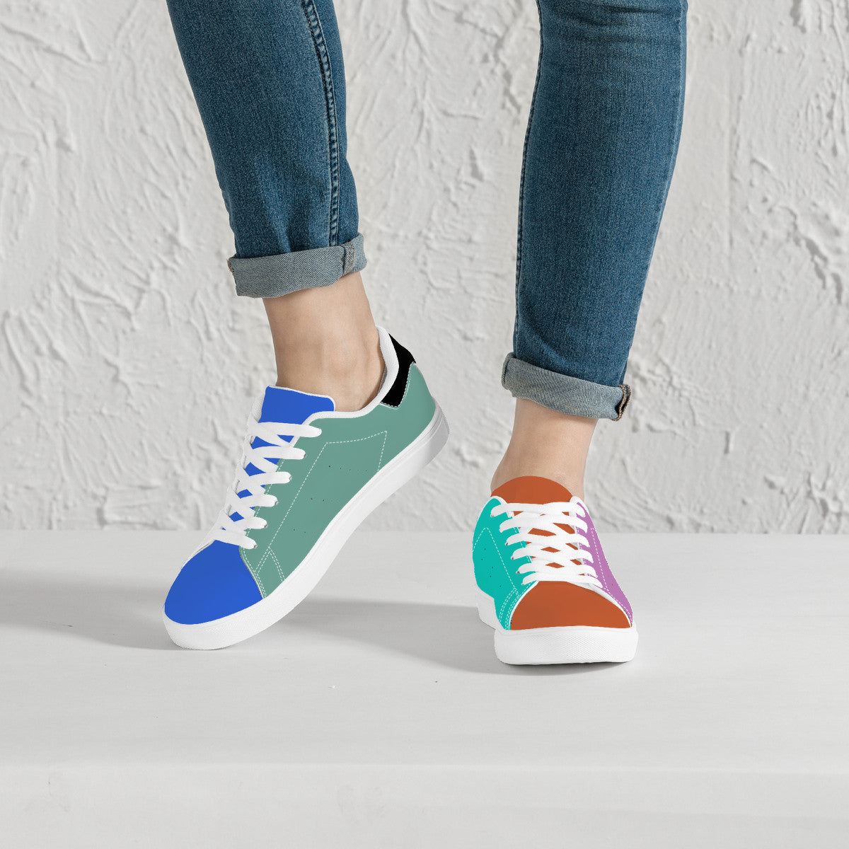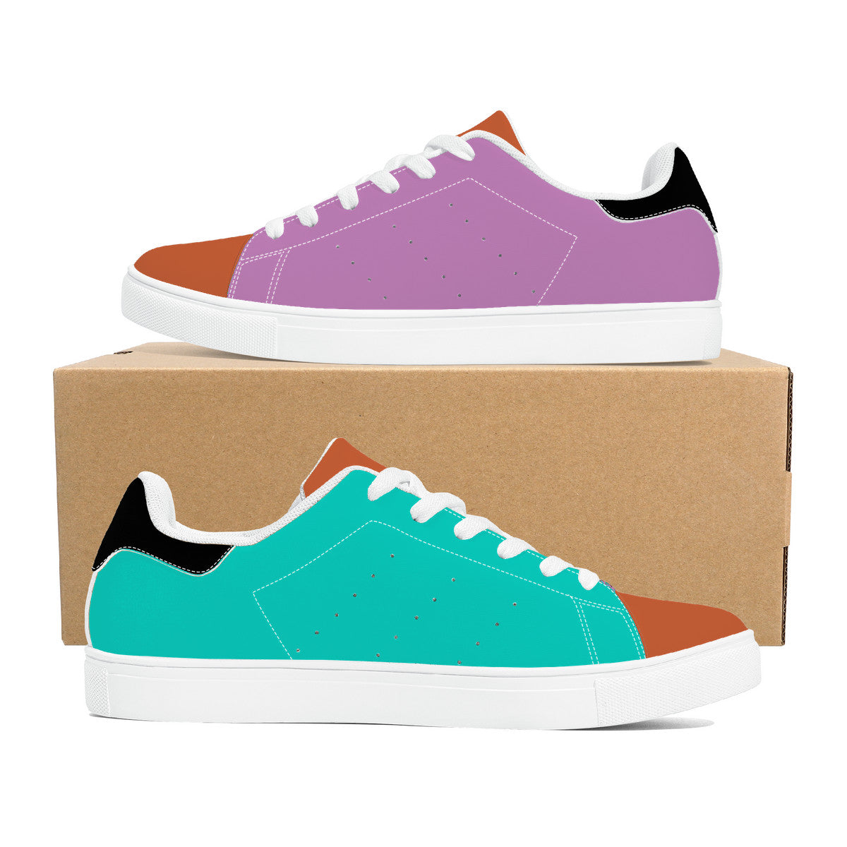 - Soft rubble soles for all over printing low top synthetic leather shoes