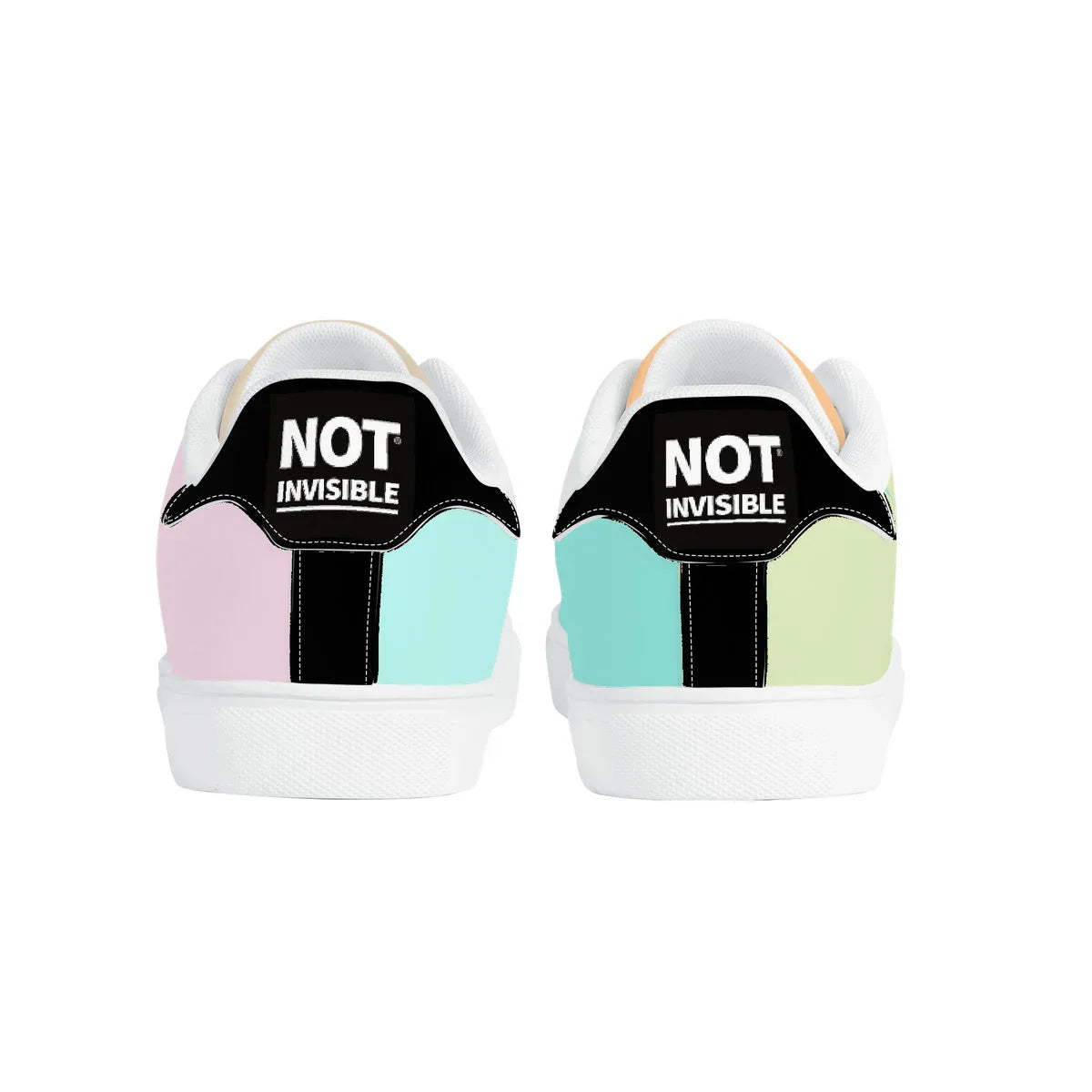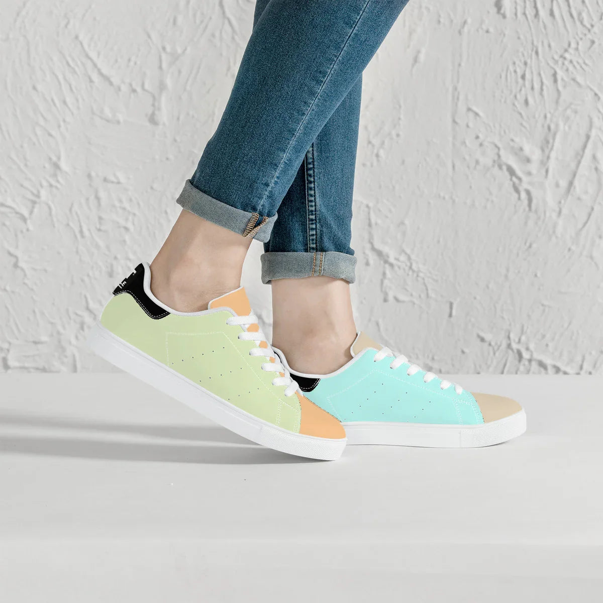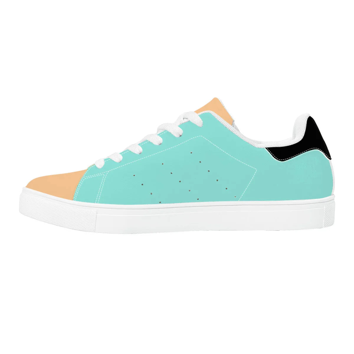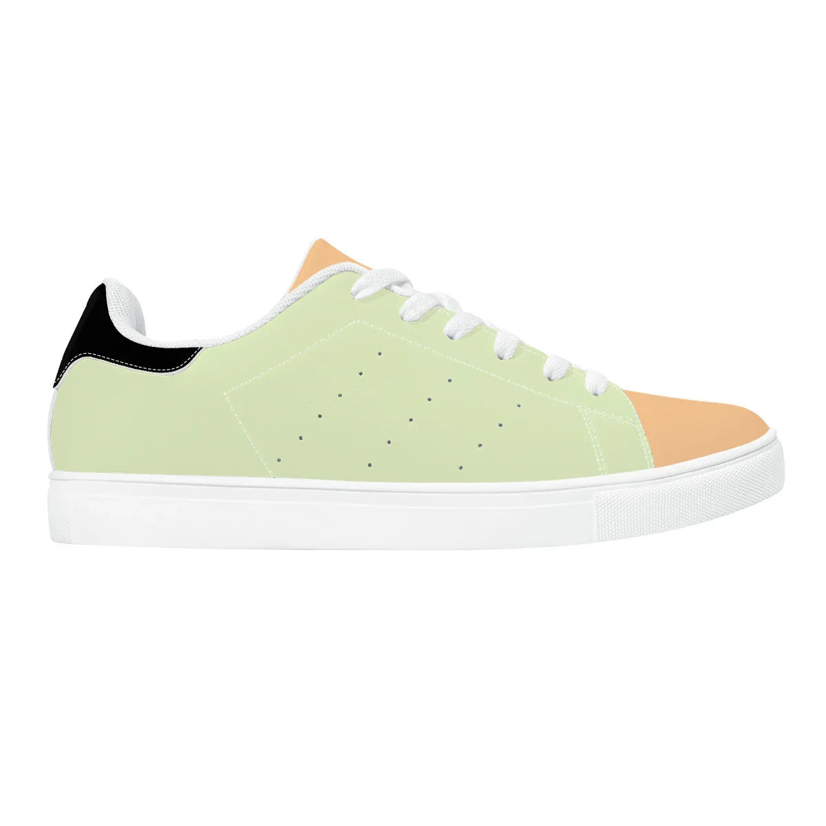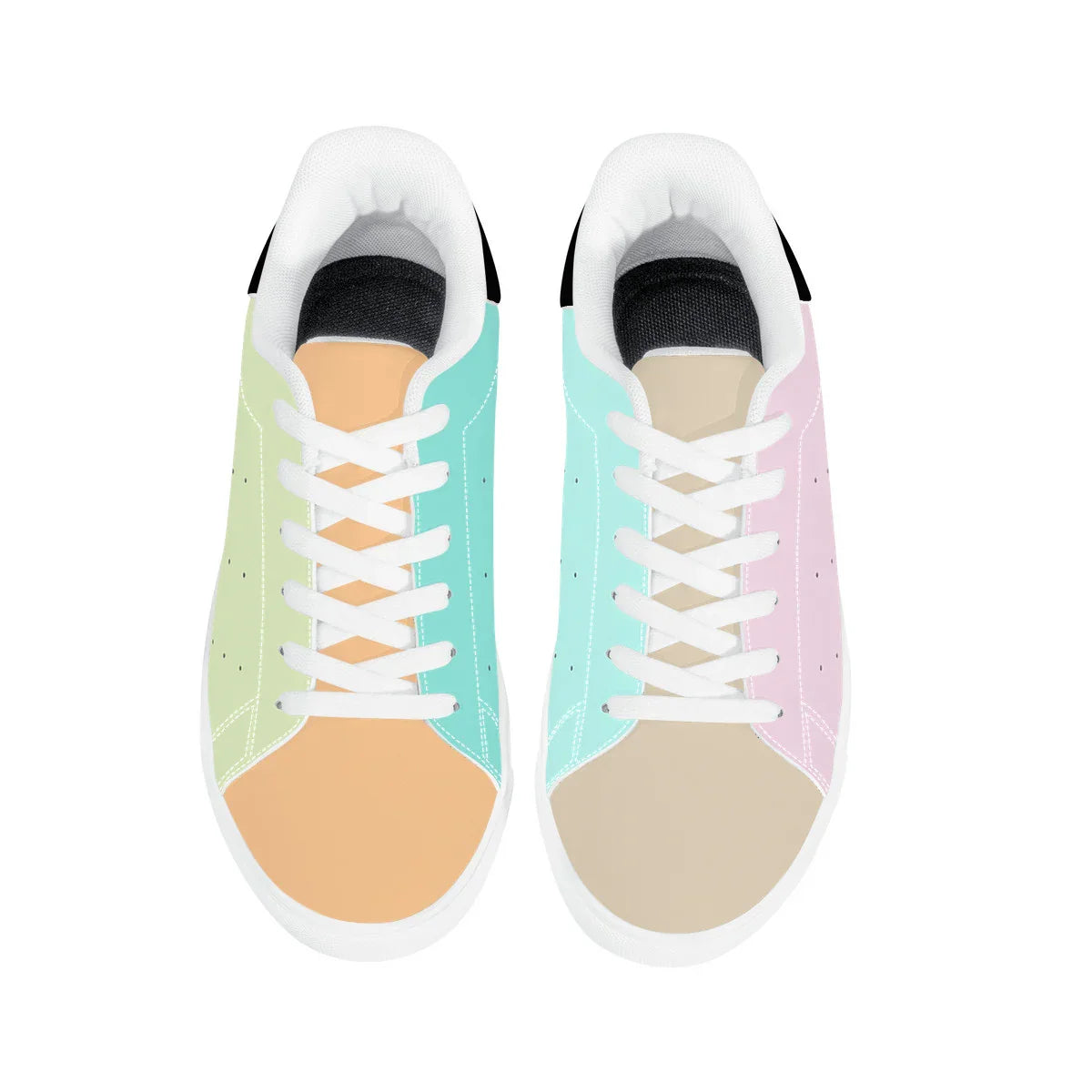 - Soft rubble soles for all over printing low top synthetic leather shoes