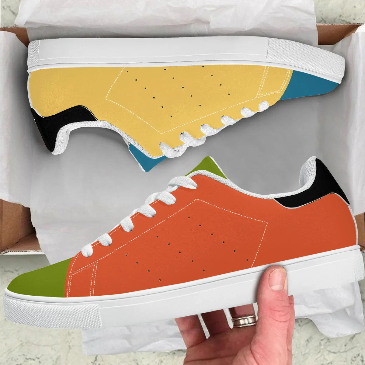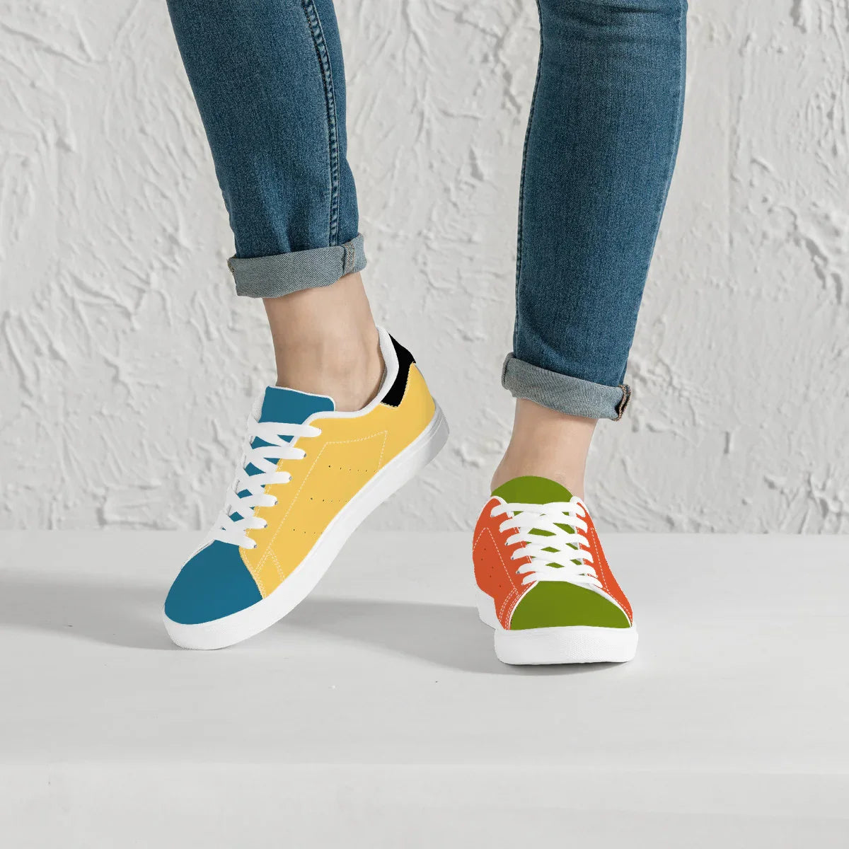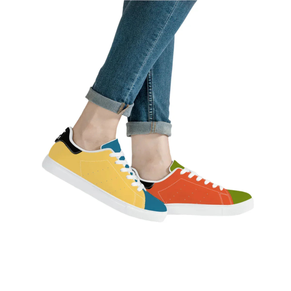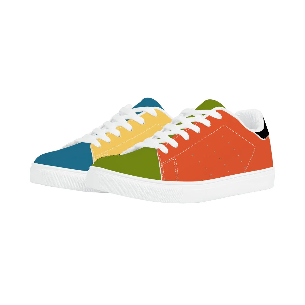 - Soft rubble soles for all over printing low top synthetic leather shoes